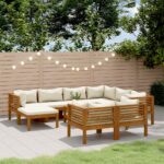 Het bankstel heeft een massief acaciahouten frame waardoor de set sterk, stevig en duurzaam is; de olieafwerking maakt de set geschikt voor buitengebruik. De afneembare kussens zijn dik gevoerd voor een geweldig zitcomfort. Een salontafel met een uniek, gelat ontwerp is ook inbegrepen. Bovendien vallen alle onderdelen op dankzij het modulaire ontwerp, waardoor ze naar wens geplaatst kunnen worden.