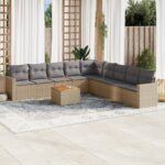 10-delige Loungeset met kussens poly rattan gemengd beige