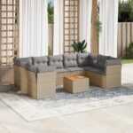 10-delige Loungeset met kussens poly rattan gemengd beige