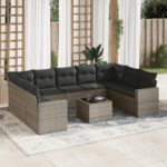 10-delige Loungeset met kussens poly rattan grijs