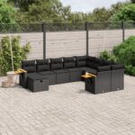 10-delige Loungeset met kussens poly rattan zwart