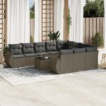 11-delige Loungeset met kussens poly rattan lichtgrijs