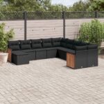 11-delige Loungeset met kussens poly rattan zwart