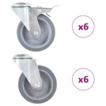De levering bevat 6 zwenkwielen met boutgaten en 6 zwenkwielen met boutgaten en remmen.