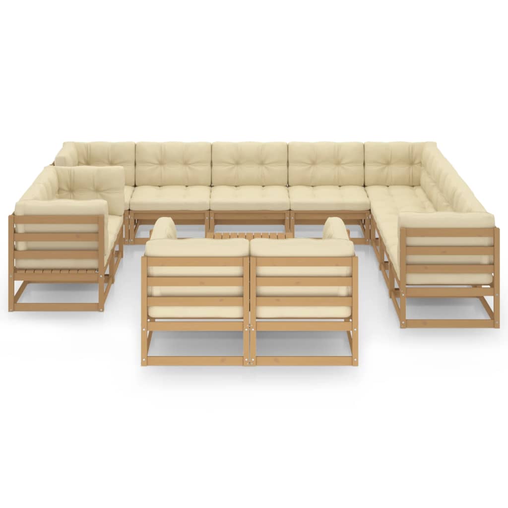 13-delige Loungeset met kussens massief grenenhout honingbruin