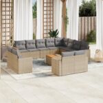 13-delige Loungeset met kussens poly rattan gemengd beige