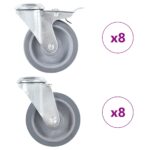 De levering bevat 8 zwenkwielen met boutgaten en 8 zwenkwielen met boutgaten en remmen.
