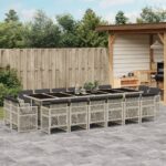 17-delige Tuinset met kussens poly rattan lichtgrijs
