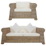 Dankzij het echte rattanmateriaal is de set gemakkelijk schoon te maken, slijtvast en geschikt voor dagelijks gebruik. Hij heeft een stevig houten frame, dat erg duurzaam en stabiel is. De dikke zit- en rugkussens zijn erg comfortabel en zijn wasbaar dankzij de verwijderbare hoezen. Bovendien dragen de brede armleuningen bij aan het zitcomfort.