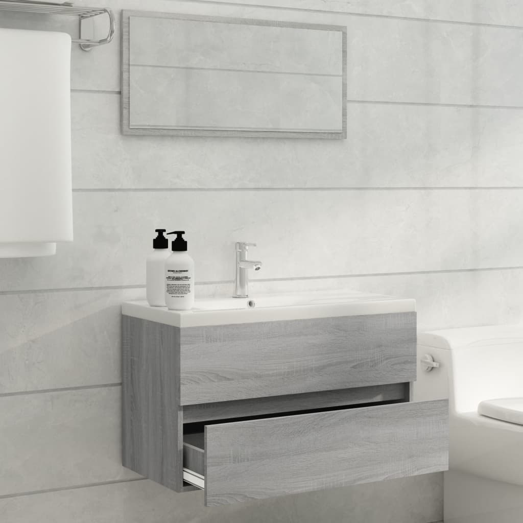 2-delige Badkamermeubelset bewerkt hout grijs sonoma eikenkleur