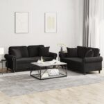 2-delige Loungeset met kussens fluweel zwart