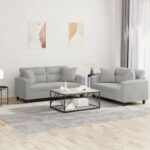 2-delige Loungeset met kussens microvezelstof lichtgrijs