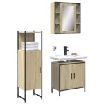Deze aantrekkelijke badkamermeubelset biedt veel opbergruimte en heeft een trendy en toch praktisch ontwerp.