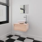De badkamermeubelset bevat een spiegel en een wastafelkast. De compacte afmetingen en het minimalistische ontwerp maken de set een uitstekende aanvulling op elke moderne badkamer. Deze meubelset is gemaakt van hoogwaardig bewerkt hout waardoor hij zeer stevig en duurzaam is.