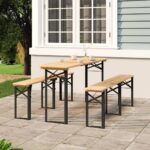 Inklapbaar ontwerp: de tafel en de bankjes kunnen eenvoudig worden ingeklapt wanneer ze niet in gebruik zijn, zodat ze gemakkelijk opgeborgen en vervoerd kunnen worden.