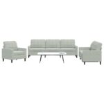 3-delige Loungeset met kussens fluweel lichtgrijs