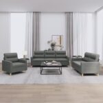 3-delige Loungeset met kussens stof donkergrijs