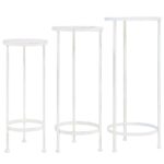 De standaards zijn gemaakt van metaal met een antieke uitstraling, roestige afwerking en mooie, decoratieve details. Ze zullen je huis een vleugje elegantie geven. De levering bevat 3 standaards in verschillende maten. De plantenhouders kunnen onder elkaar worden bewaard om ruimte te besparen.