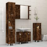 4-delige Badkamermeubelset bewerkt hout gerookt eikenkleurig