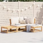 Deze houten loungeset met kussens heeft een elegant ontwerp en is een geweldige keuze om op te ontspannen en te genieten in de tuin of op het terras.