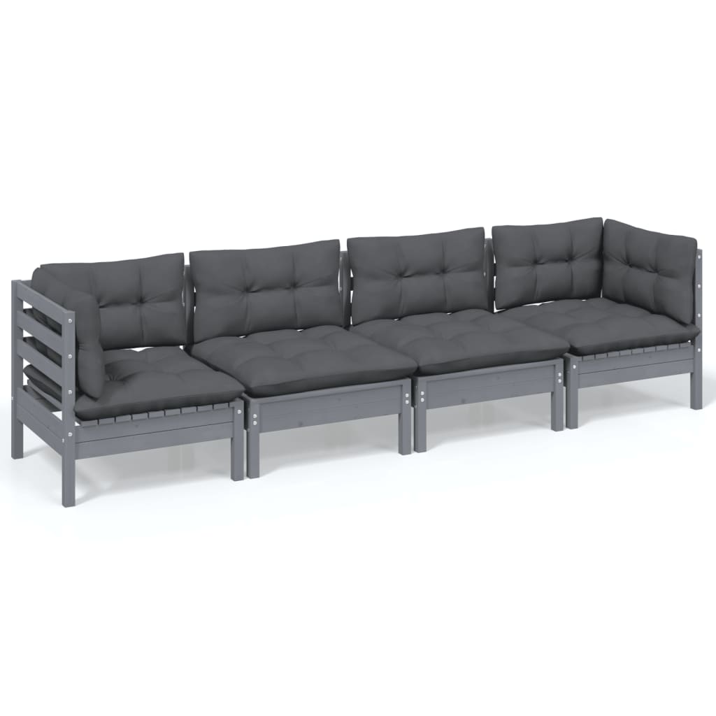 4-delige Loungeset met kussens massief grenenhout