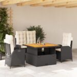 4-delige Tuinset met kussens poly rattan zwart