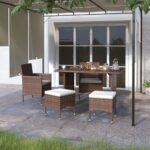 De tuinmeubels zijn gemaakt van een sterk, gepoedercoat stalen frame waardoor ze stevig, stabiel en duurzaam zijn. De tuinstoel- en voetenbankset is bekleed met PE-rattan, is makkelijk schoon te maken met een vochtige doek en is geschikt voor dagelijks buitengebruik. Het dik gevoerde kussen biedt extra zitcomfort.