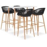 Onze statafel heeft een duurzaam MDF tafelblad en sterke metalen poten met hout-look. De barkrukken hebben een ergonomisch ontworpen zitting met geรฏntegreerde, lage rugleuning met mesh-look. Ze zijn gemaakt van robuust PP en worden ondersteund door sterke metalen poten met thermisch getransferprinte hout-look, waardoor deze aantrekkelijke stoelen stevig en duurzaam zijn.