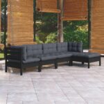 5-delige Loungeset met kussens grenenhout zwart