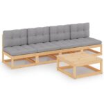5-delige Loungeset met kussens massief grenenhout