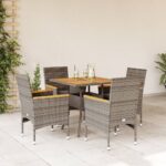 5-delige Loungeset met kussens poly rattan en acaciahout grijs