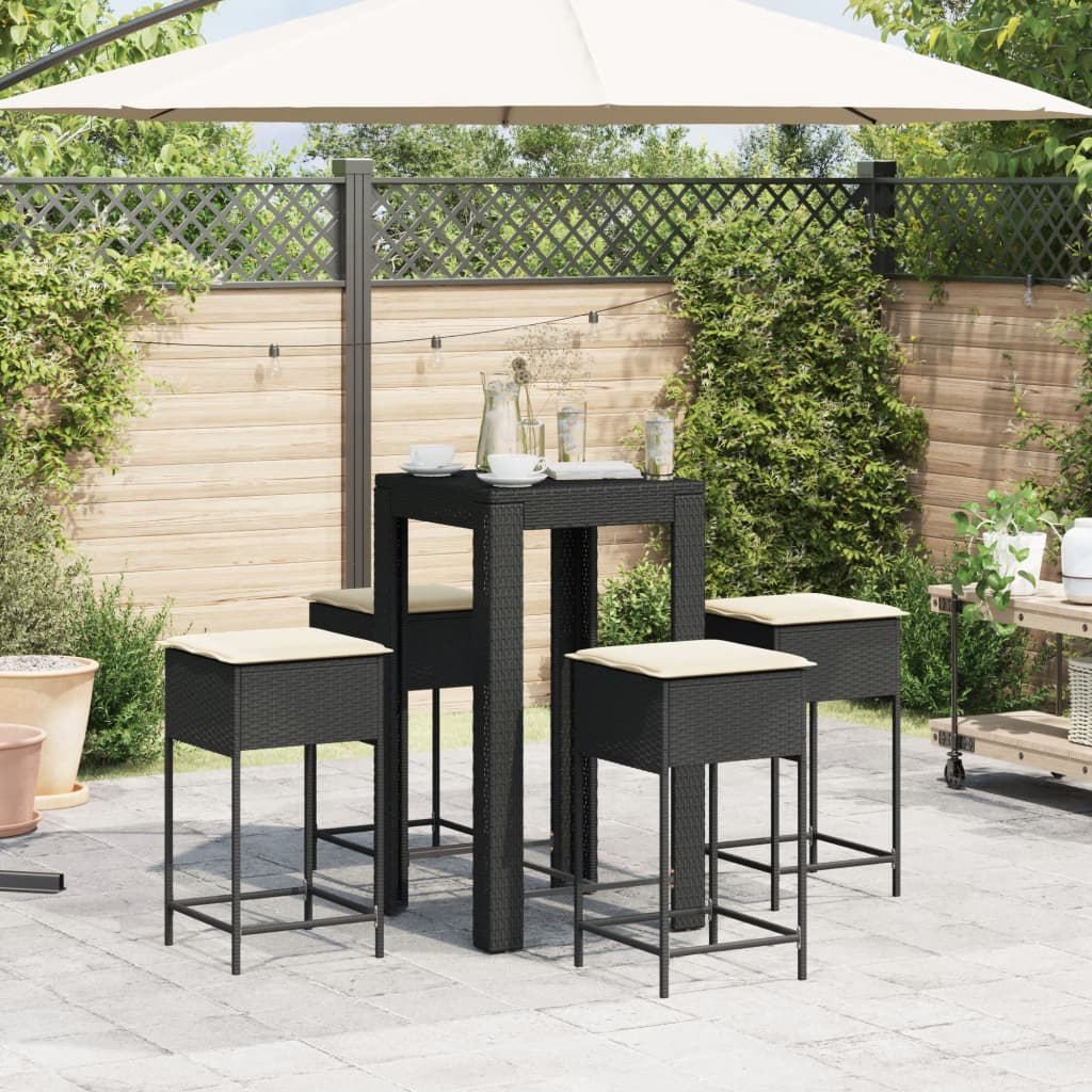 Be the first to review “5-delige Tuinbarset met kussens poly rattan zwart” Reactie annuleren