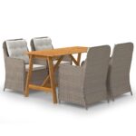 De eettafel is gemaakt van massief acaciahout met een olieafwerking, waardoor hij stabiel, duurzaam en eenvoudig te onderhouden is. De eetstoelen, met een gepoedercoat stalen frame bedekt met weerbestendig PE-rattan, zijn stevig en gemakkelijk schoon te maken. De ergonomisch ontworpen vorm en dik gevoerde kussens zorgen voor het ultieme zitcomfort. De onderhoudsarme polyester kussenhoezen kunnen eenvoudig verwijderd en gewassen worden.