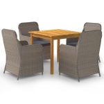 De eettafel is gemaakt van massief acaciahout met een olieafwerking, waardoor hij stabiel, duurzaam en eenvoudig te onderhouden is. De eetstoelen, met een gepoedercoat stalen frame bedekt met weerbestendig PE-rattan, zijn stevig en gemakkelijk schoon te maken. De ergonomisch ontworpen vorm en dik gevoerde kussens zorgen voor het ultieme zitcomfort. De onderhoudsarme polyester kussenhoezen kunnen eenvoudig verwijderd en gewassen worden.