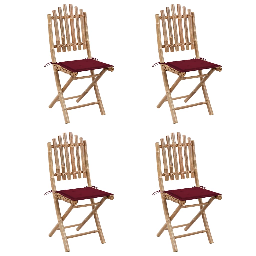 De tuinset is gemaakt van massief bamboe waardoor hij sterk en duurzaam is. Hij is ook weerbestendig, waterdicht en gemakkelijk schoon te maken met een vochtige doek. De tafel en stoelen zijn inklapbaar om ruimte te besparen wanneer ze niet in gebruik zijn. De meegeleverde kussens bieden extra comfort tijdens het loungen. Elk kussen is gemaakt van 100% polyester dat behandeld is om het waterafstotend te maken. Elk kussen heeft twee sets touwtjes voor stevige bevestiging aan de eetstoel.