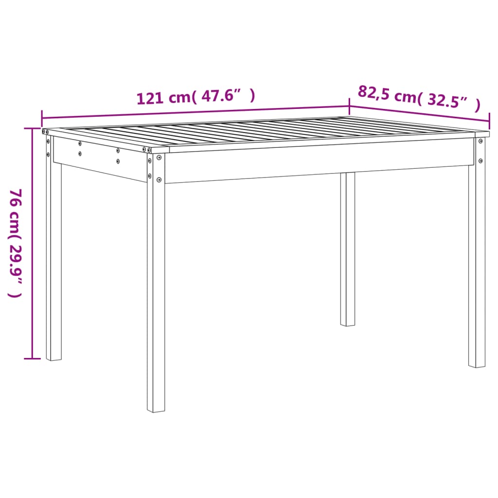 Afmetingen tuintafel: 121 x 82,5 x 76 cm (L x B x H)