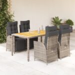 5-delige Tuinset met kussens poly rattan grijs