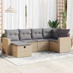 6-delige Loungeset met kussens poly rattan beige