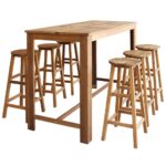 De tafel en krukken zijn gemaakt van massief acacia hardhout met een olieafwerking en de set is stevig en weerbestendig. De houten structuur maakt het meubilair erg duurzaam en de voetensteunen maken het mogelijk om comfortabel op de krukken te zitten.
