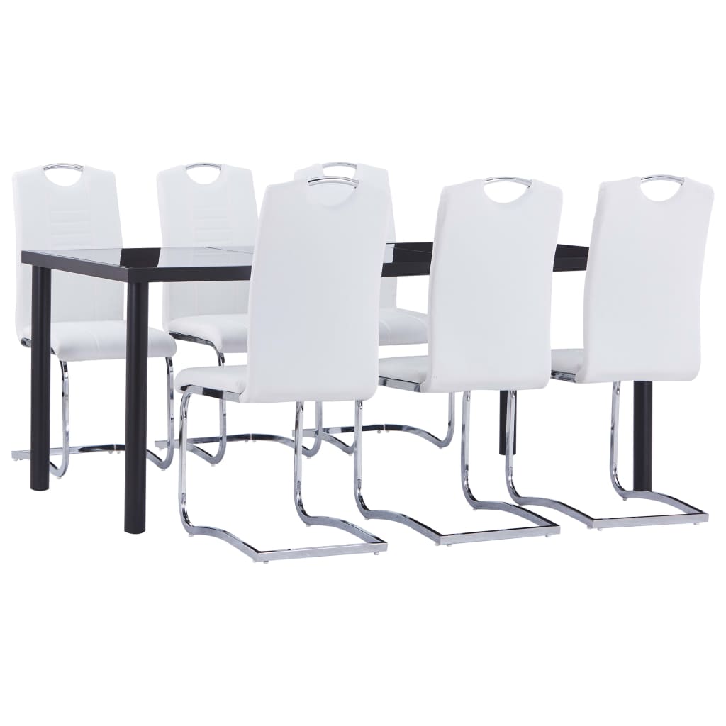 De tafel heeft een glad gehard glazen tafelblad dat eenvoudig te reinigen is met een vochtige doek. Het gepoedercoat metalen frame is stabiel en duurzaam, en draagt bij aan de massieve constructie van de tafel. De stoelen zijn bekleed met zacht kunstleer en zijn dik gevoerd voor maximaal comfort. Het ergonomische ontwerp maakt de eetkamerstoel buitengewoon comfortabel om op te zitten. Bovendien maakt het verchroomd stalen frame de stoelen zeer stevig en stabiel. Elke stoel heeft een handgreep op de rugleuning waardoor de stoelen gemakkelijk te verplaatsen zijn. Deze eethoek is eenvoudig te monteren.