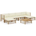 Deze tuinmeubelset is gemaakt van bamboe waardoor hij stevig en gemakkelijk schoon te maken is. De dik gevoerde kussens bieden extra comfort tijdens het loungen. De kussenhoezen hebben ritsen waardoor ze afneembaar en wasbaar zijn. Deze tuinset is eenvoudig te verplaatsen door de lichtgewicht constructie. Het modulaire ontwerp maakt het mogelijk om de set in elke gewenste samenstelling te plaatsen.
