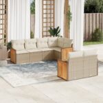 7-delige Loungeset met kussens poly rattan beige