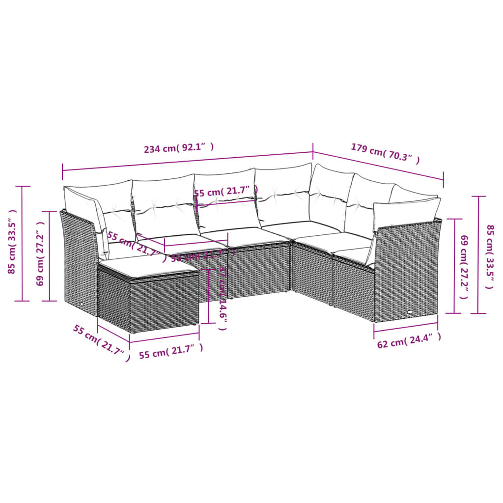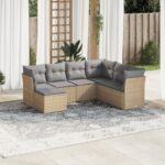 7-delige Loungeset met kussens poly rattan beige