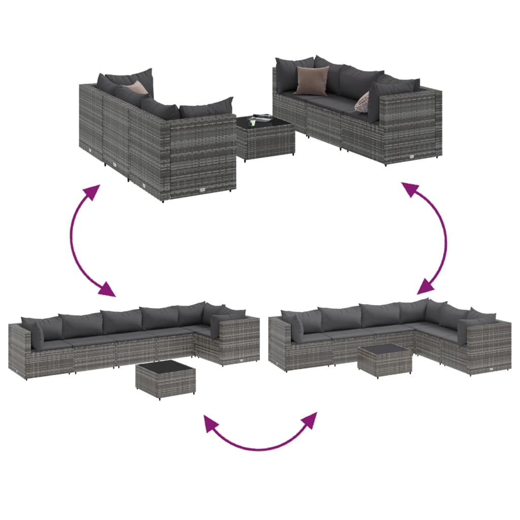7-delige Loungeset met kussens poly rattan grijs