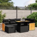 7-delige Loungeset met kussens poly rattan zwart