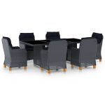 7-delige Tuinset met kussens poly rattan donkergrijs