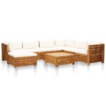 De houten loungeset heeft een tijdloos lattenpatroon en geeft een vleugje rustieke charme aan je terras, tuin of woonkamer. De tuinset is gemaakt van massief acaciahout en is weerbestendig en zeer duurzaam. Gecombineerd met de meegeleverde, zachte en dik gevoerde kussens biedt onze loungeset het hoogste comfort. De tafel is ideaal om eten en drinken binnen handbereik te houden. De tuinmeubelset is eenvoudig te monteren.