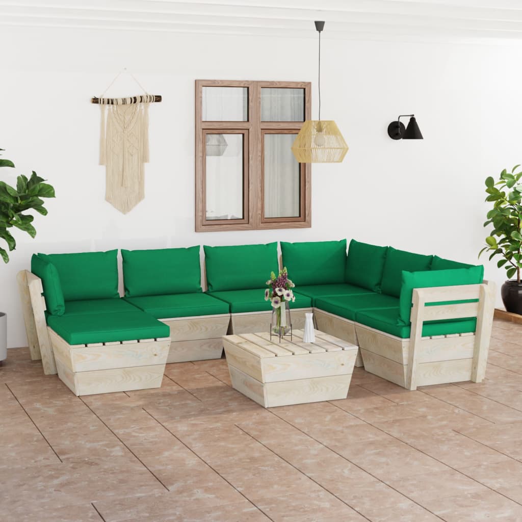 Deze 8-delige pallet tuinset met kussens is een uitstekende keuze om te relaxen en te genieten van het weer, een dutje te doen of te kletsen met familie en vrienden. De houten loungeset, met een tijdloos palletontwerp, geeft je terras, tuin of woonkamer een vleugje rustieke charme.