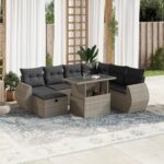 8-delige Loungeset met kussens poly rattan lichtgrijs