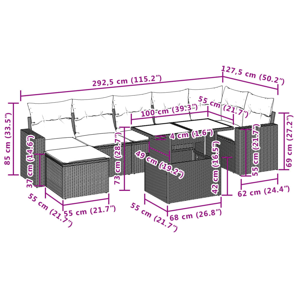 8-delige Loungeset met kussens poly rattan lichtgrijs